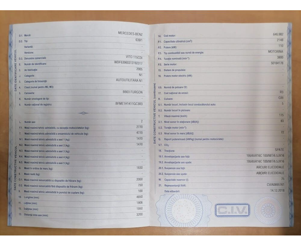 Autoutilitara marca Mercedes-Benz Vito, an fabricatie 2005, avand nr. De identificare WDF63960313192317.